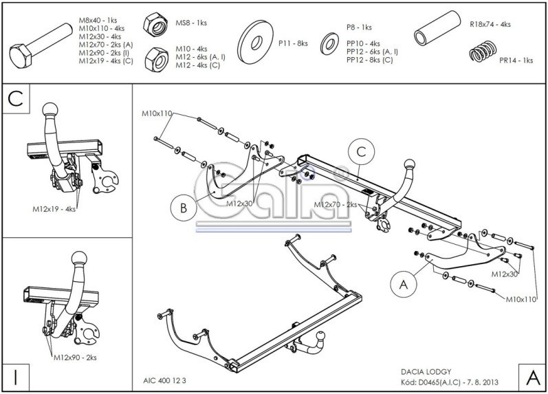 Hak holowniczy w całości ocynkowany, kula demontowalna, przykręcana śrubami.