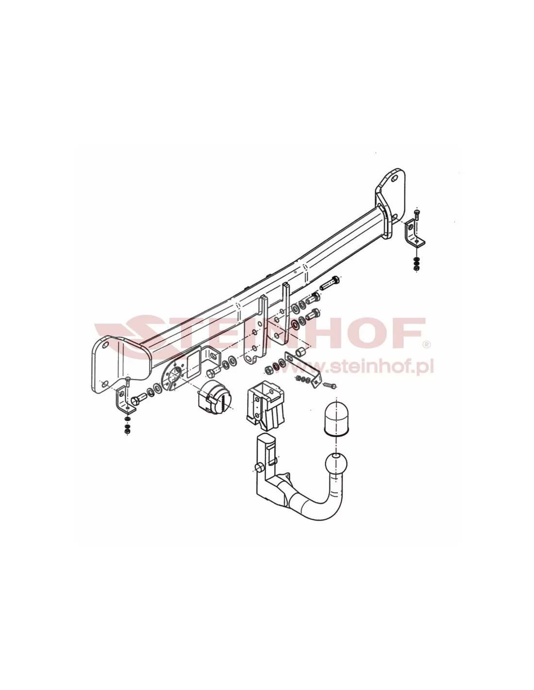 Hak holowniczy, w całości ocynkowany, z kulą demontowaną automatycznie, bez użycia narzędzi. W zestawie pokrowiec do przewożenia kuli w bagażniku. Pasuje do modeli 3 i 5 drzwi (htb.) oraz 4 drzwi (sedan)