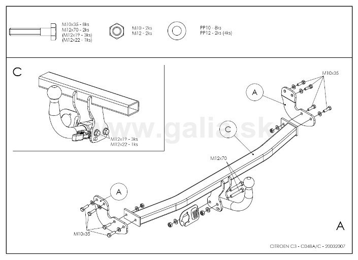 Hak holowniczy, w całości ocynkowany, z kulą demontowaną, przykręcaną śrubami. Pasuje do modeli 3 i 5 drzwi (htb.) oraz 4 drzwi (sedan)