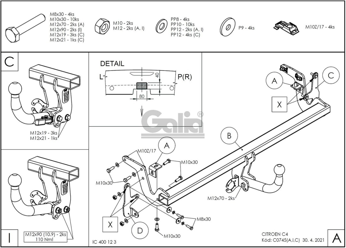 Hak holowniczy w całości ocynkowany, kula demontowalna, przykręcana śrubami.