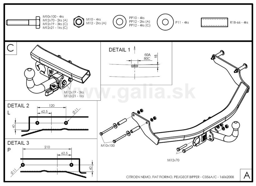 Hak holowniczy w całości ocynkowany, kula demontowalna, przykręcana śrubami.