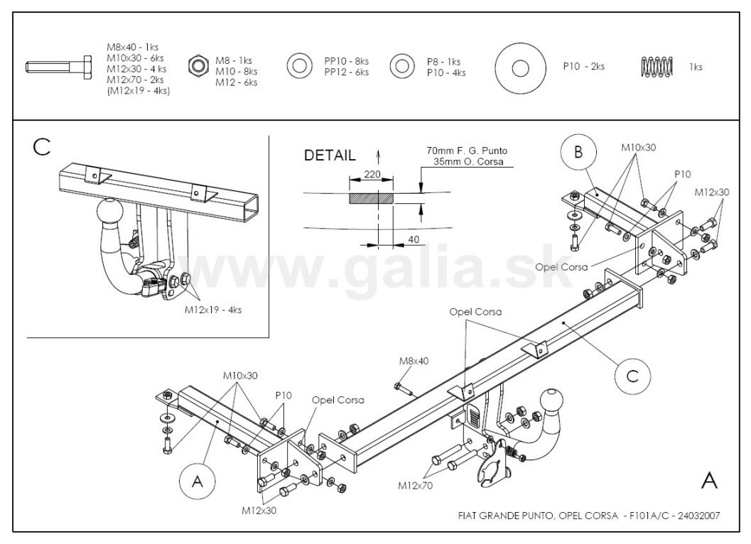 Hak holowniczy w całości ocynkowany, kula demontowalna, przykręcana śrubami.