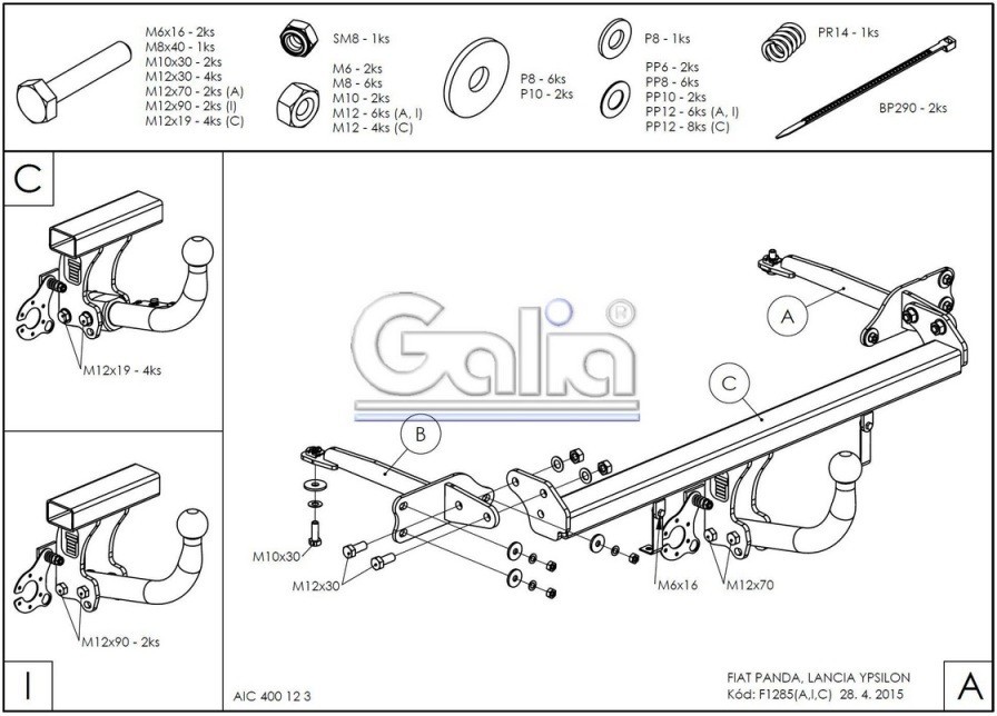 Hak holowniczy, w całości ocynkowany, z kulą demontowaną, przykręcaną śrubami. Pasuje do modeli 3 i 5 drzwi (htb.) oraz 4 drzwi (sedan)