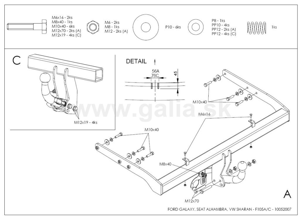 Hak holowniczy ocynkowany, kula demontowana automatycznie, bez użycia narzędzi. W zestawie etui do przechowywania kuli kiedy nie jest w użytku.