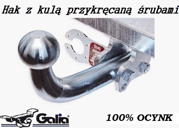 Hak holowniczy ocynkowany, kula przykręcana na 2 śruby.