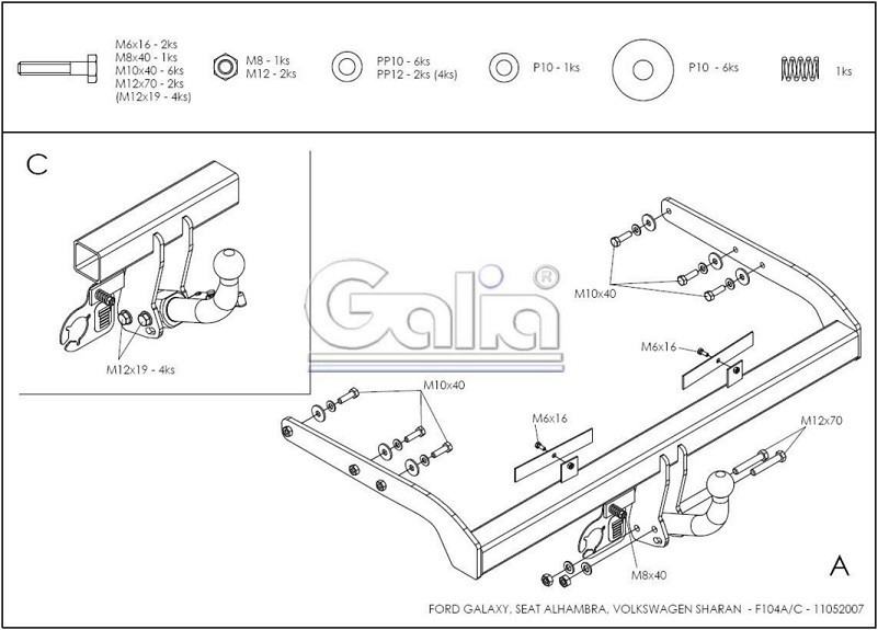 Hak holowniczy, w całości ocynkowany, z kulą demontowaną, przykręcaną śrubami. Pasuje do modeli 3 i 5 drzwi (htb.) oraz 4 drzwi (sedan)