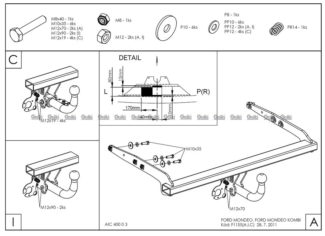 Hak holowniczy w całości ocynkowany, kula demontowalna, przykręcana śrubami.