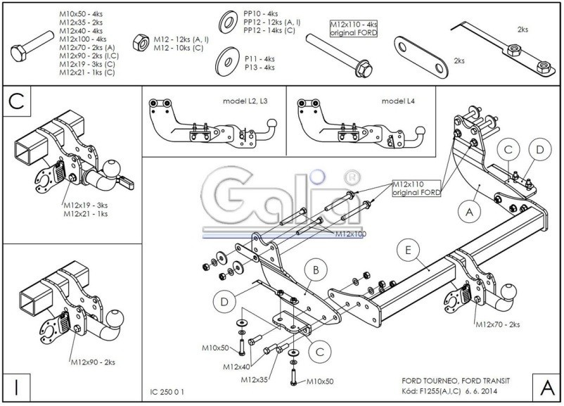 Hak holowniczy w całości ocynkowany, kula demontowalna, przykręcana śrubami.