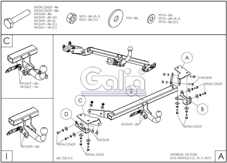Hak holowniczy w całości ocynkowany, kula demontowalna, przykręcana śrubami.