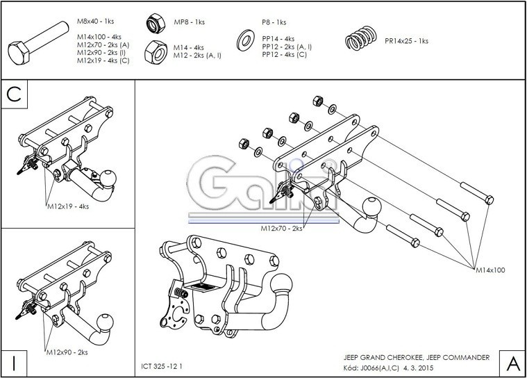 Hak holowniczy ocynkowany, kula demontowana, przykręcana śrubami.