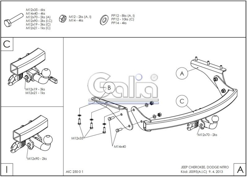 Hak holowniczy w całości ocynkowany, kula demontowalna, przykręcana śrubami.