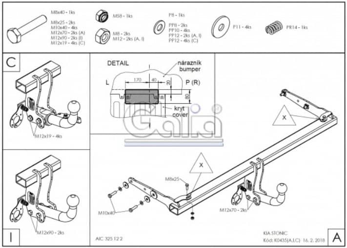 Hak holowniczy Galia, z kulą przykręcaną śrubami do KIA Stonic od 2017r.