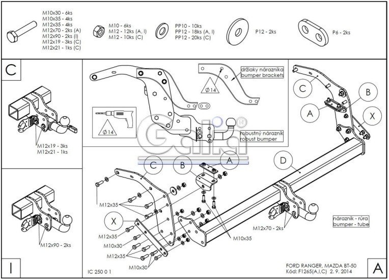 Hak holowniczy w całości ocynkowany, kula demontowalna, przykręcana śrubami.