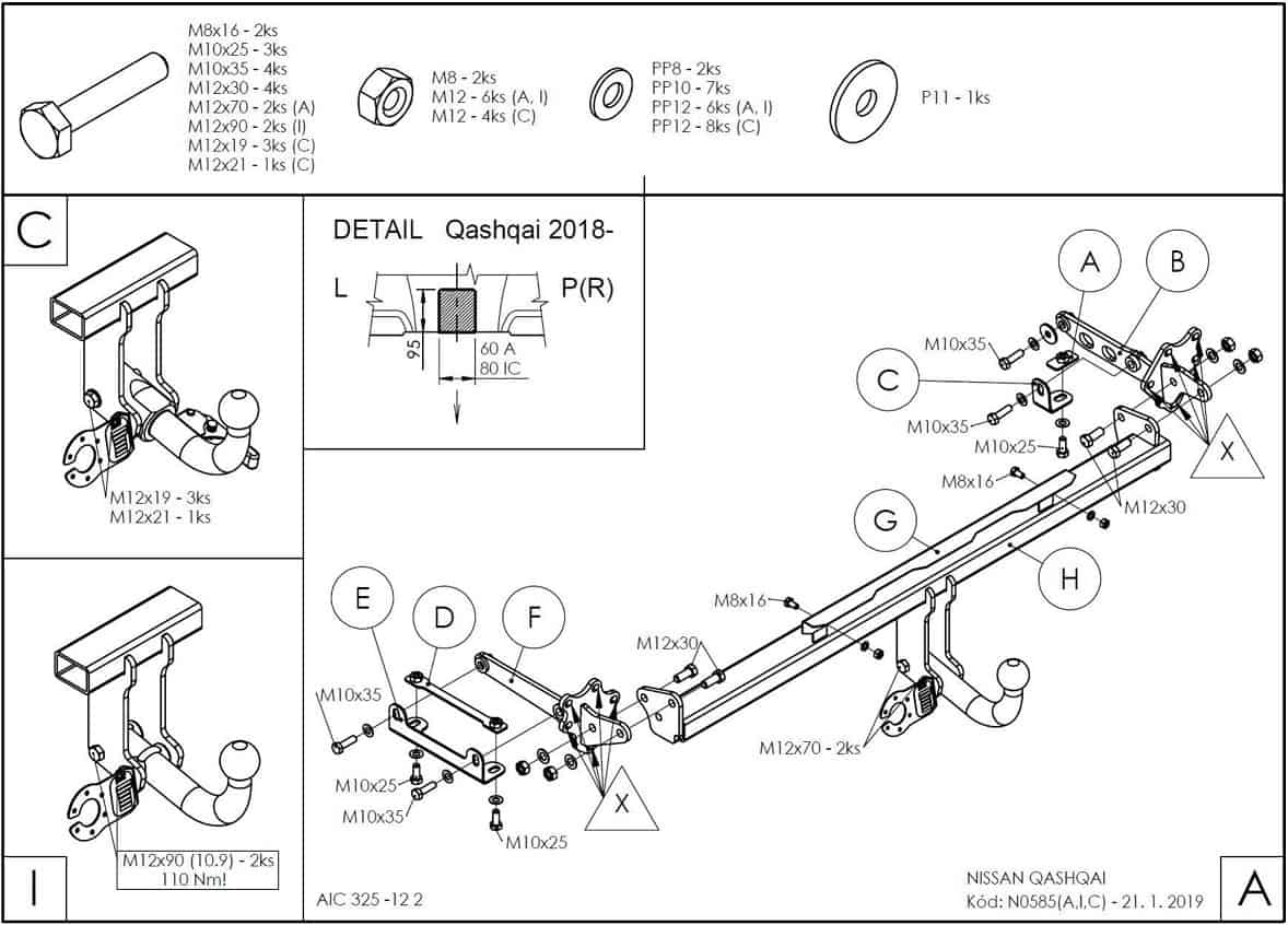 Hak holowniczy w całości ocynkowany, kula demontowalna, przykręcana śrubami.