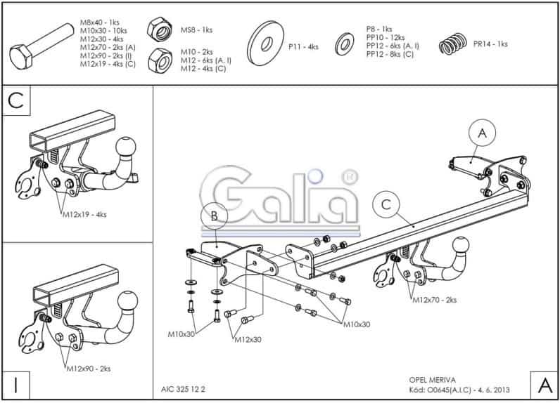 Hak holowniczy w całości ocynkowany, kula demontowalna, przykręcana śrubami.