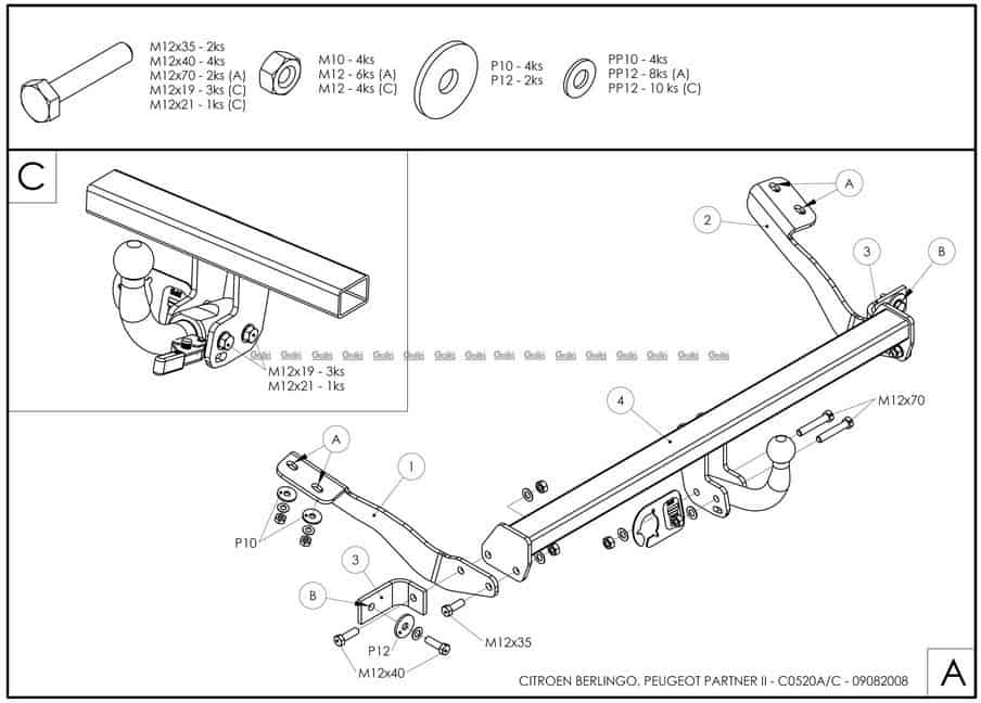 Hak holowniczy ocynkowany, kula demontowana automatycznie, bez użycia narzędzi. W zestawie etui do przechowywania kuli kiedy nie jest w użytku.