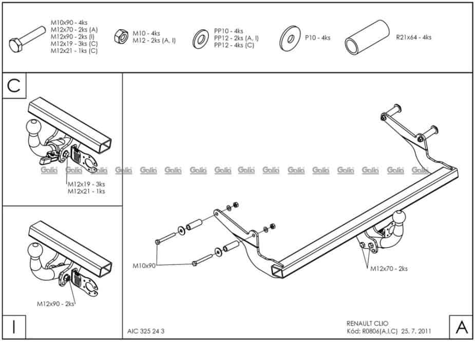 Hak holowniczy w całości ocynkowany, kula demontowalna automatycznie, bez użycia narzędzi. W zastawie etui do przewożenia kuli kiedy nie jest używana.