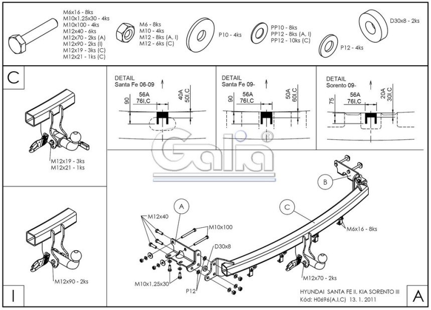Hak holowniczy w całości ocynkowany, kula demontowalna, przykręcana śrubami.