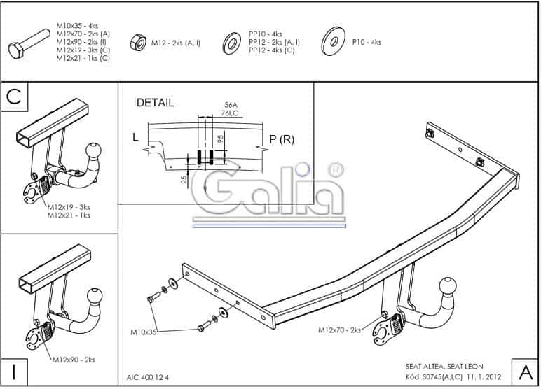 Hak holowniczy w całości ocynkowany, kula demontowalna, przykręcana śrubami.
