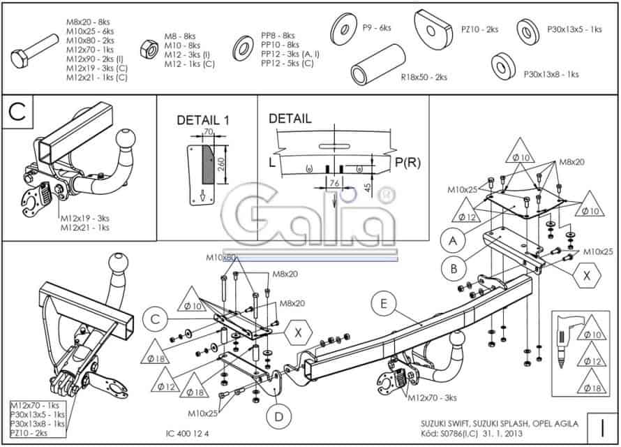 Hak holowniczy ocynkowany, kula demontowana automatycznie, bez użycia narzędzi. W zestawie etui do przechowywania kuli kiedy nie jest w użytku.