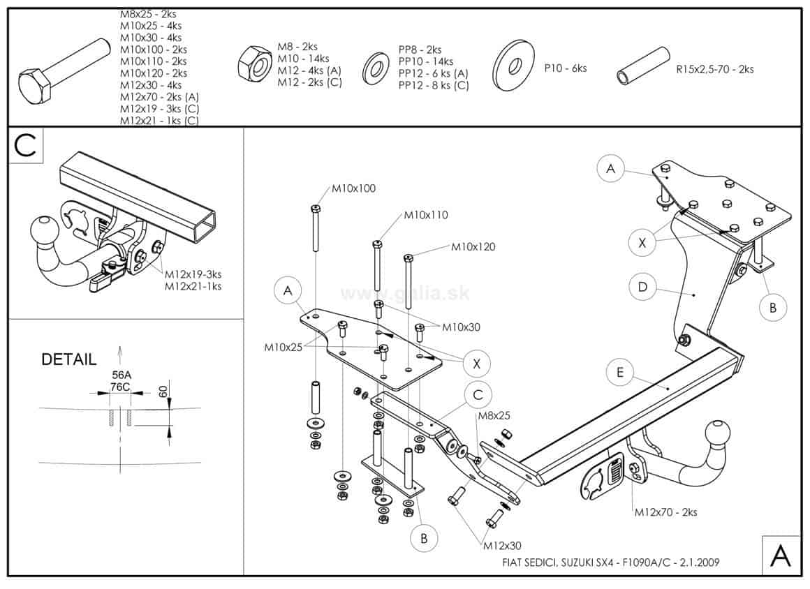 Hak holowniczy w całości ocynkowany, kula demontowalna, przykręcana śrubami.