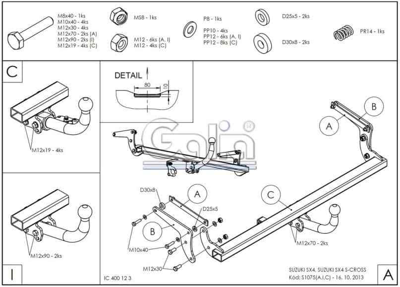 Hak holowniczy ocynkowany, kula przykręcana na 2 śruby.