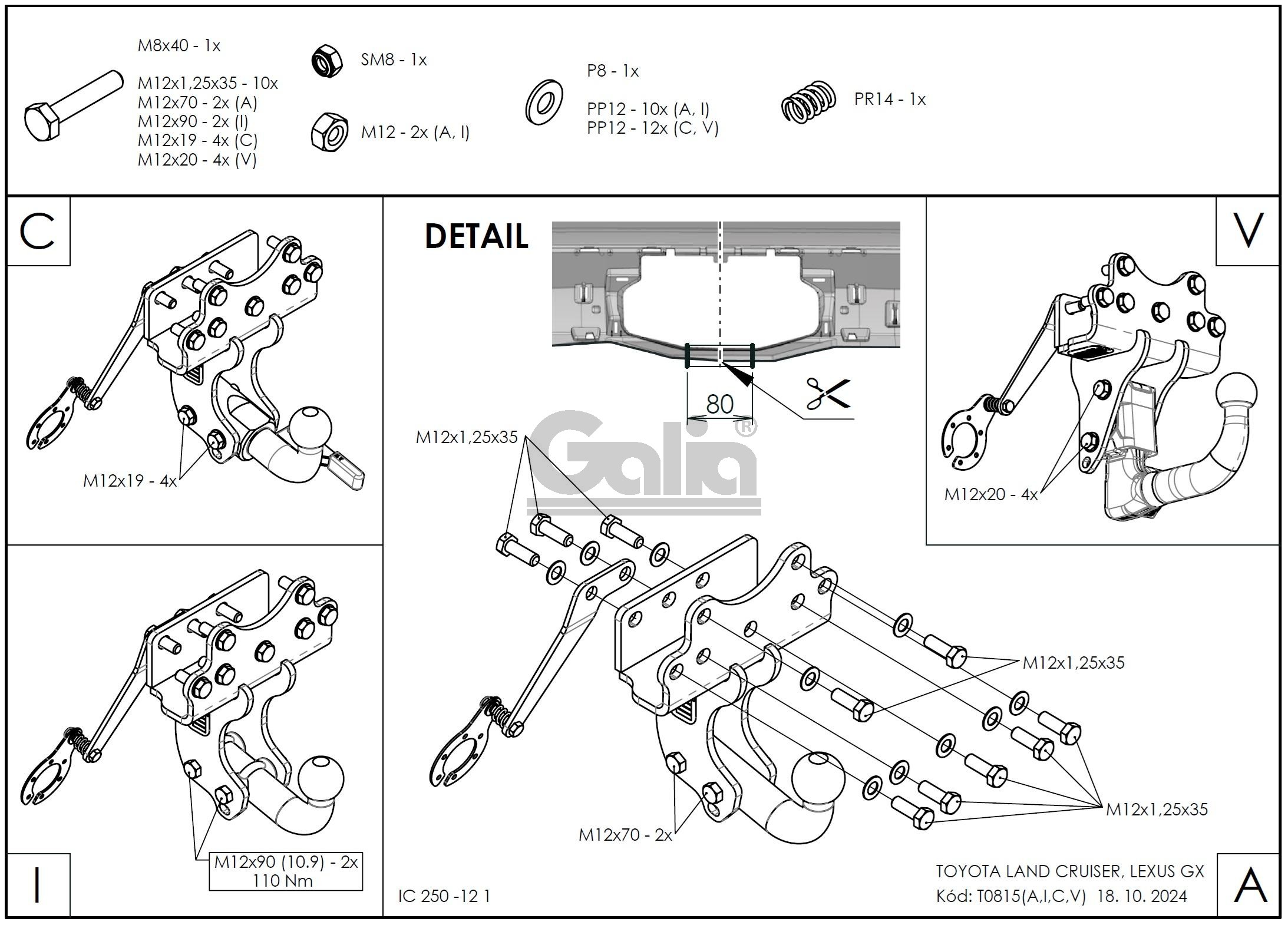 Hak holowniczy Galia, z kulą demontowalną, przykręcaną śrubami, do Toyota Landcruiser od 2024r.r.