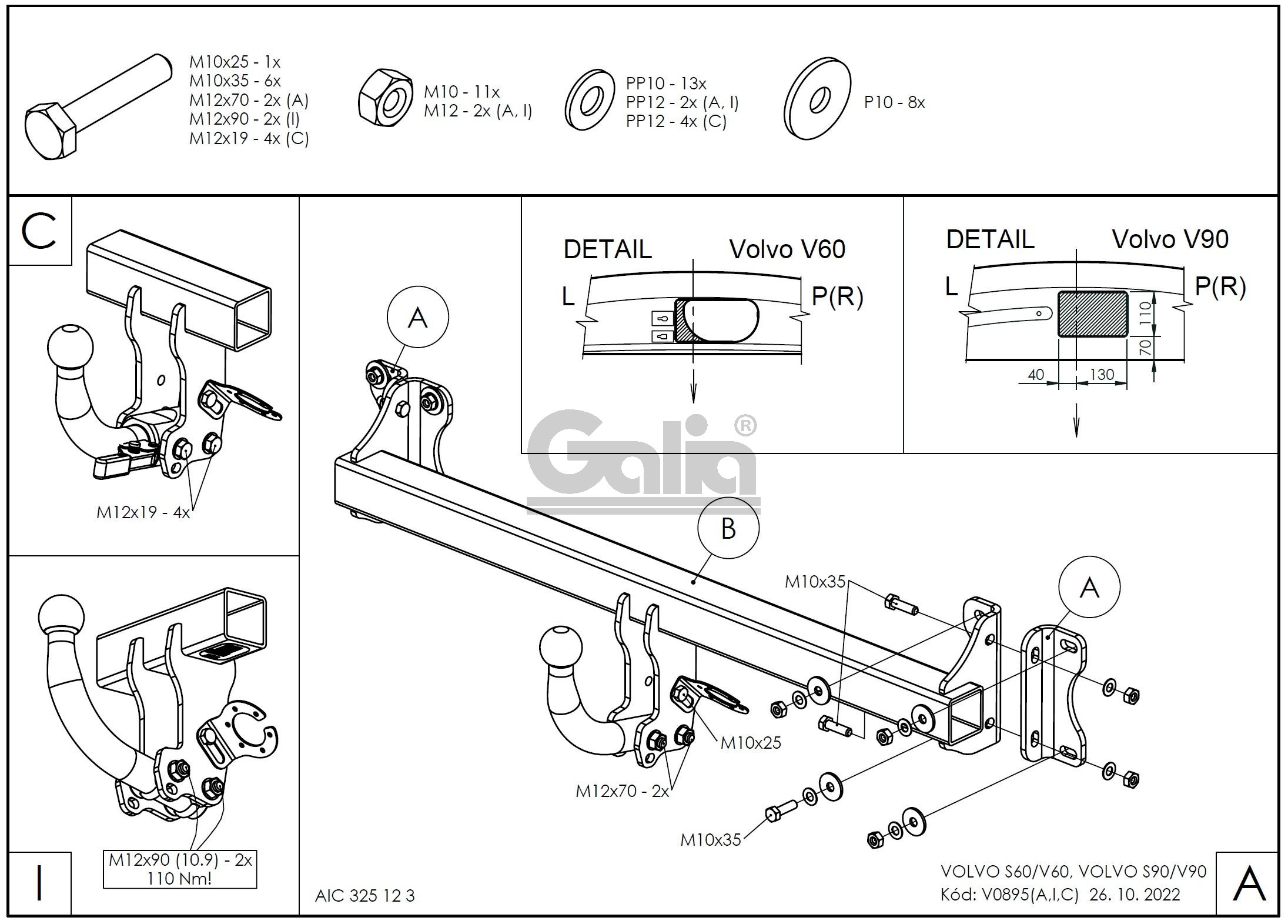 Hak holowniczy w całości ocynkowany, kula demontowalna, przykręcana śrubami.