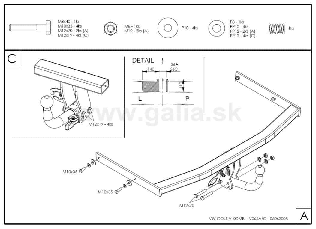 Hak holowniczy ocynkowany, kula demontowana automatycznie, bez użycia narzędzi. W zestawie etui do przechowywania kuli kiedy nie jest w użytku.