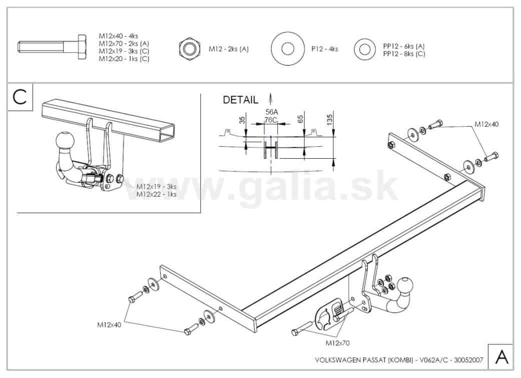 Hak holowniczy w całości ocynkowany, kula demontowalna, przykręcana śrubami.
