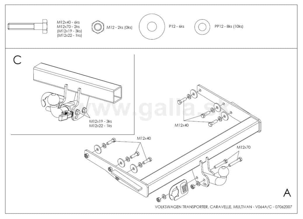 Hak holowniczy w całości ocynkowany, kula demontowalna, przykręcana śrubami.